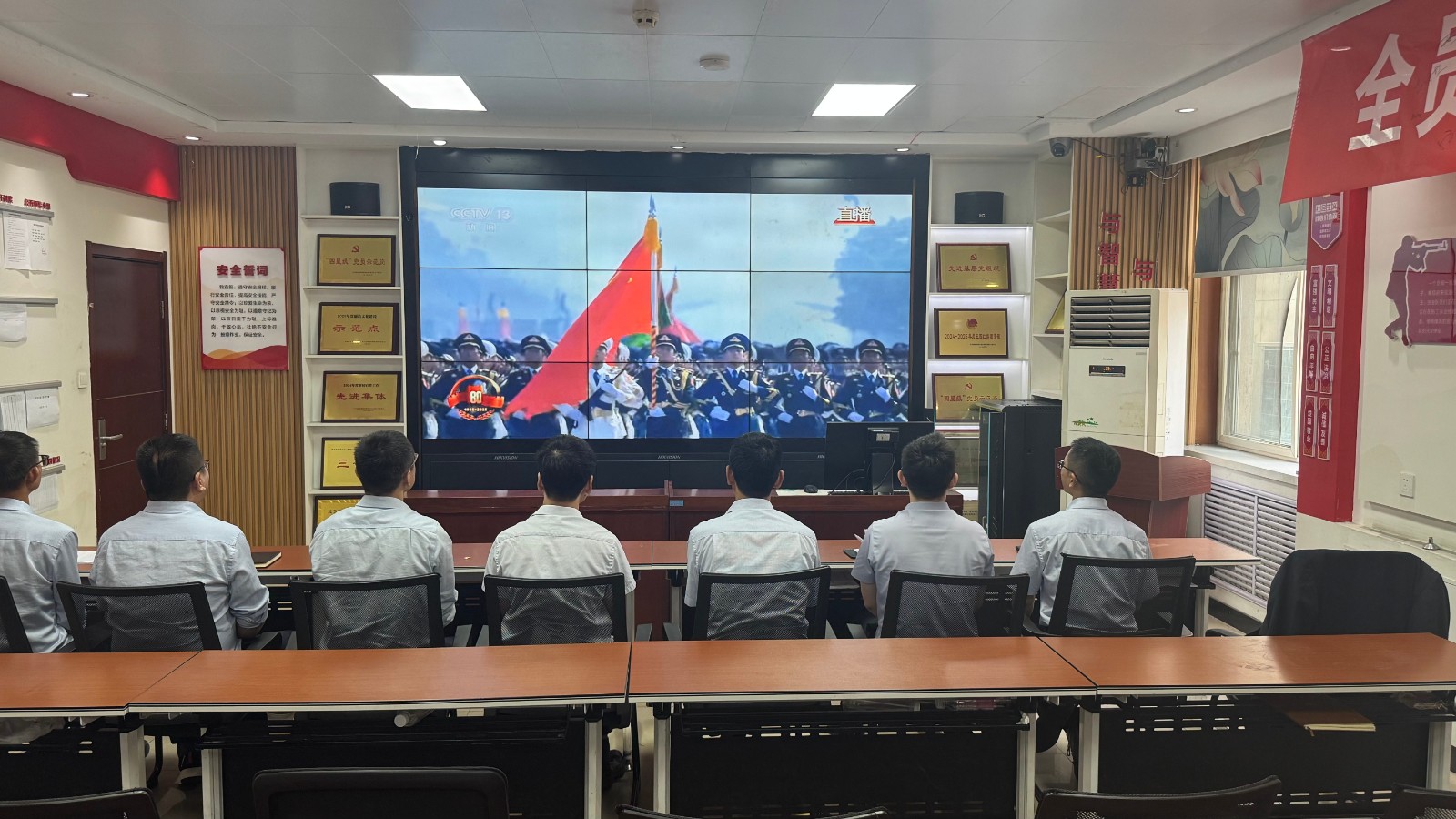 歷史燭照未來,精神永續(xù)傳承。為深切緬懷在抗日戰(zhàn)爭(zhēng)中英勇獻(xiàn)身的革命先烈,大力弘揚(yáng)偉大的抗戰(zhàn)精神,引導(dǎo)全體黨員、職工銘記光輝歷史、堅(jiān)定理想信念、強(qiáng)化責(zé)任擔(dān)當(dāng),9月3日,機(jī)運(yùn)工區(qū)黨支部組織開展了“銘記歷史偉業(yè),傳承紅色基因”主題黨日活動(dòng),組織全體黨員集中觀看紀(jì)念中國(guó)人民抗日戰(zhàn)爭(zhēng)暨世界反法西斯戰(zhàn)爭(zhēng)勝利80周年閱兵儀式現(xiàn)場(chǎng)直播。上午九時(shí)整,機(jī)運(yùn)工區(qū)全體黨懷著無(wú)比崇敬與激動(dòng)的心情,目光齊聚屏幕。伴隨著激昂雄壯的國(guó)歌奏響,鮮艷的五星紅旗在天安門廣場(chǎng)冉冉升起,大家心潮澎湃,肅然起敬。隨后,規(guī)模宏大、氣勢(shì)磅礴的閱兵式正式開始。屏幕上,一個(gè)個(gè)整齊劃一、威武雄壯的徒步方隊(duì),邁著鏗鏘有力、撼人心魄的步伐走過檢閱臺(tái),堅(jiān)毅的眼神、挺拔的身姿,充分展現(xiàn)了新時(shí)代軍人聽黨指揮的忠誠(chéng)品格和能打勝仗的過硬本領(lǐng);一列列代表著國(guó)家科技實(shí)力與國(guó)防現(xiàn)代化建設(shè)最新成果的裝備方隊(duì),鐵流滾滾,氣勢(shì)如虹,尖端武器依次亮相,彰顯了捍衛(wèi)國(guó)家主權(quán)、安全、發(fā)展利益的堅(jiān)定決心與強(qiáng)大能力;雄鷹呼嘯,劃破長(zhǎng)空,戰(zhàn)機(jī)編隊(duì)以精準(zhǔn)的隊(duì)形和磅礴的氣勢(shì)接受檢閱,描繪出壯美的藍(lán)天畫卷,宣示著捍衛(wèi)國(guó)家領(lǐng)空安全的鋼鐵意志。整個(gè)閱兵過程,秩序井然、威武雄壯、氣勢(shì)恢宏,生動(dòng)詮釋了人民軍隊(duì)“聽黨指揮、能打勝仗、作風(fēng)優(yōu)良”的強(qiáng)軍目標(biāo),全方位展示了在黨的堅(jiān)強(qiáng)領(lǐng)導(dǎo)下,國(guó)家日益強(qiáng)大的綜合國(guó)力和維護(hù)世界和平的堅(jiān)定信念。屏幕前,黨員們?nèi)褙炞ⅲ瑹o(wú)不被這震撼人心的場(chǎng)面所感染,民族自豪感與榮譽(yù)感油然而生,現(xiàn)場(chǎng)不時(shí)響起由衷的贊嘆和熱烈的掌聲。通過本次“銘記歷史偉業(yè),傳承紅色基因”主題黨日活動(dòng),機(jī)運(yùn)工區(qū)黨支部全體黨員經(jīng)歷了一次深刻的精神淬煉與思想升華。大家的歷史使命感、民族自豪感、崗位責(zé)任感得到顯著增強(qiáng),紛紛表示以更加飽滿昂揚(yáng)的精神狀態(tài)、更加求真務(wù)實(shí)的工作作風(fēng)、更加開拓創(chuàng)新的進(jìn)取意識(shí),恪盡職守,銳意進(jìn)取,全力以赴保障原煤運(yùn)輸安全高效,為工區(qū)及公司的持續(xù)高質(zhì)量發(fā)展貢獻(xiàn)全部力量!